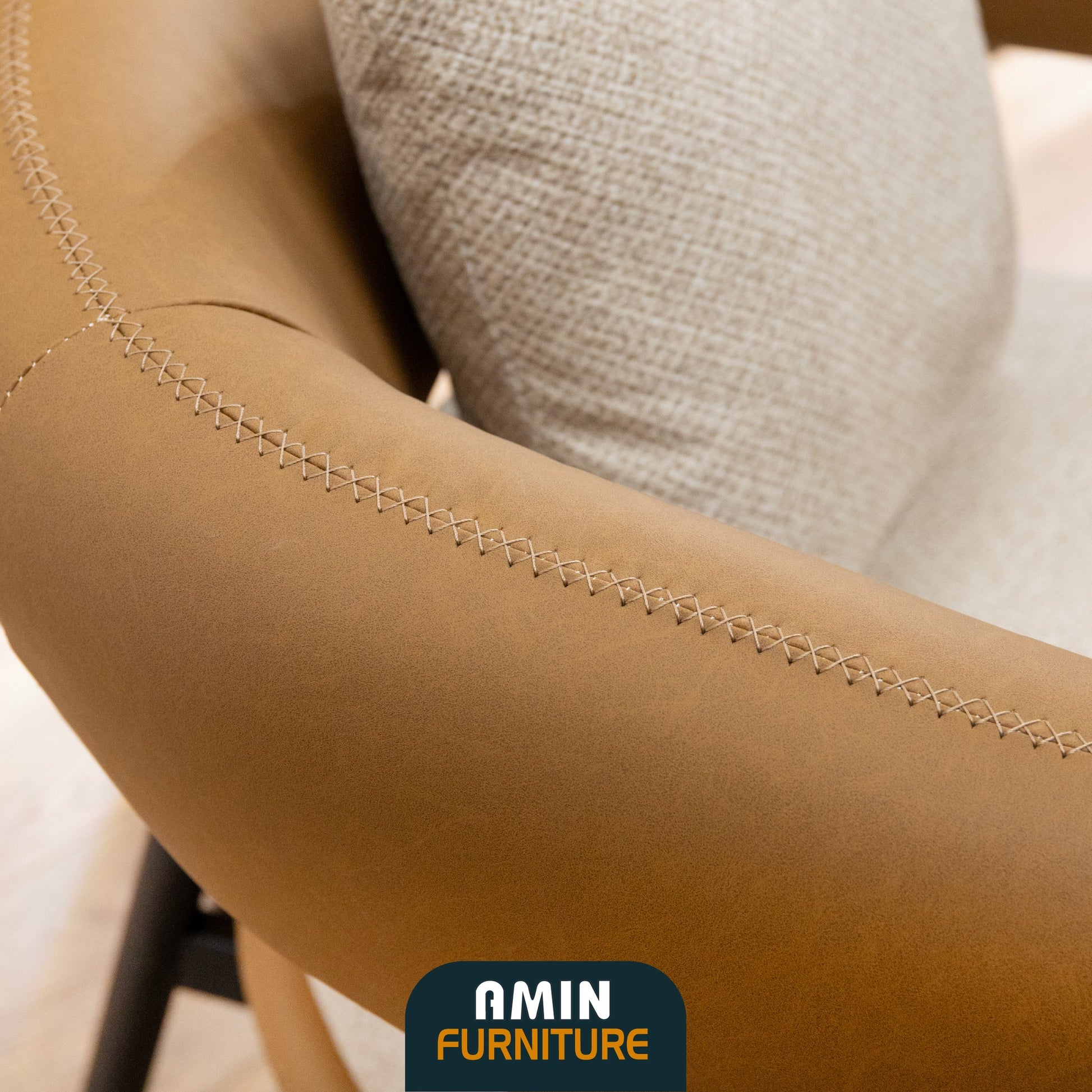 • Upholstered with easy-to-clean fabric with leather accents